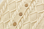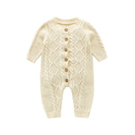 A timeless and cozy knitted baby jumpsuit made from soft yarn that keeps your baby warm and comfortable. Designed with a classic cable knit pattern and wooden buttons at the front for easy dressing. Perfect for everyday wear or as a charming outfit for special occasions.