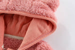 Wrap your little one in warmth and cuteness with this baby teddy bear hooded jacket. Made from ultra-soft fleece fabric, this cozy zip-up coat is perfect for keeping your baby snug during chilly days. The adorable hood with little bear ears adds a playful touch, while the soft lining provides extra comfort and warmth.