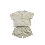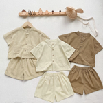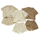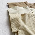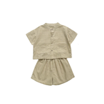 The minimalist earthy tones and clean design make this set both stylish and practical. The button-up shirt allows for quick dressing, while the relaxed-fit shorts offer all-day comfort and freedom of movement. Available in three beautiful colors: beige check, cream, and brown.