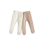 Soft and comfortable baby leggings made from cotton with built-in feet. The feet feature a cute printed smiley detail that adds a playful and charming touch. Perfect for everyday wear and keeps little feet warm without the need for socks.