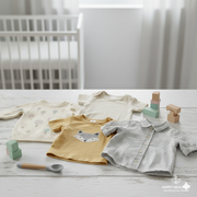 Soft and comfortable baby pants made from cotton with charming animal prints on the back. Available in several colors and designs featuring a bear, cat, koala, or chick. Perfect for both play and rest, adding a cute and playful...
