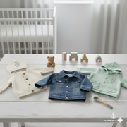 A cozy and timeless knitted cardigan for babies, made from soft yarn that keeps your child warm while being gentle on the skin. Designed with a hood for extra comfort and wooden buttons at the front for easy dressing. A perfect...