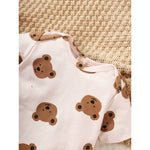 4-delars babyset med brunbjörnsprint | kortärmad body, byxor, mössa och skor